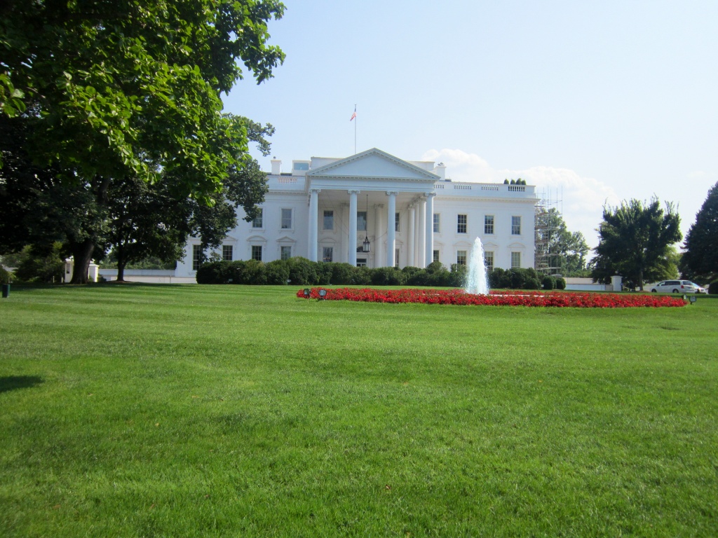Opposite the Treasury Department is the White House and its splendid back lawn.