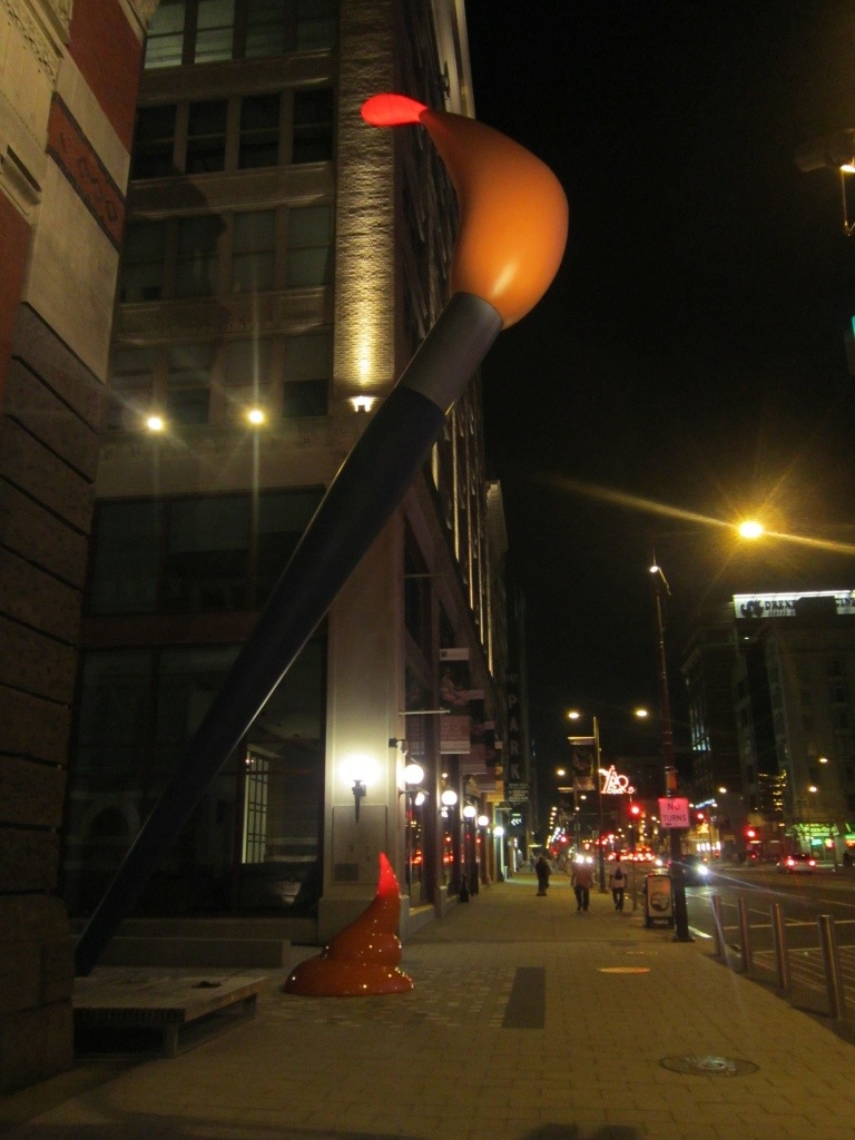 Night-time wanderings (the kind I had been warned against) uncovered more fascinating pieces of civic decoration… Like this giant clothes peg (which I’m sure must have a meaning deeper than any I can comprehend right now).