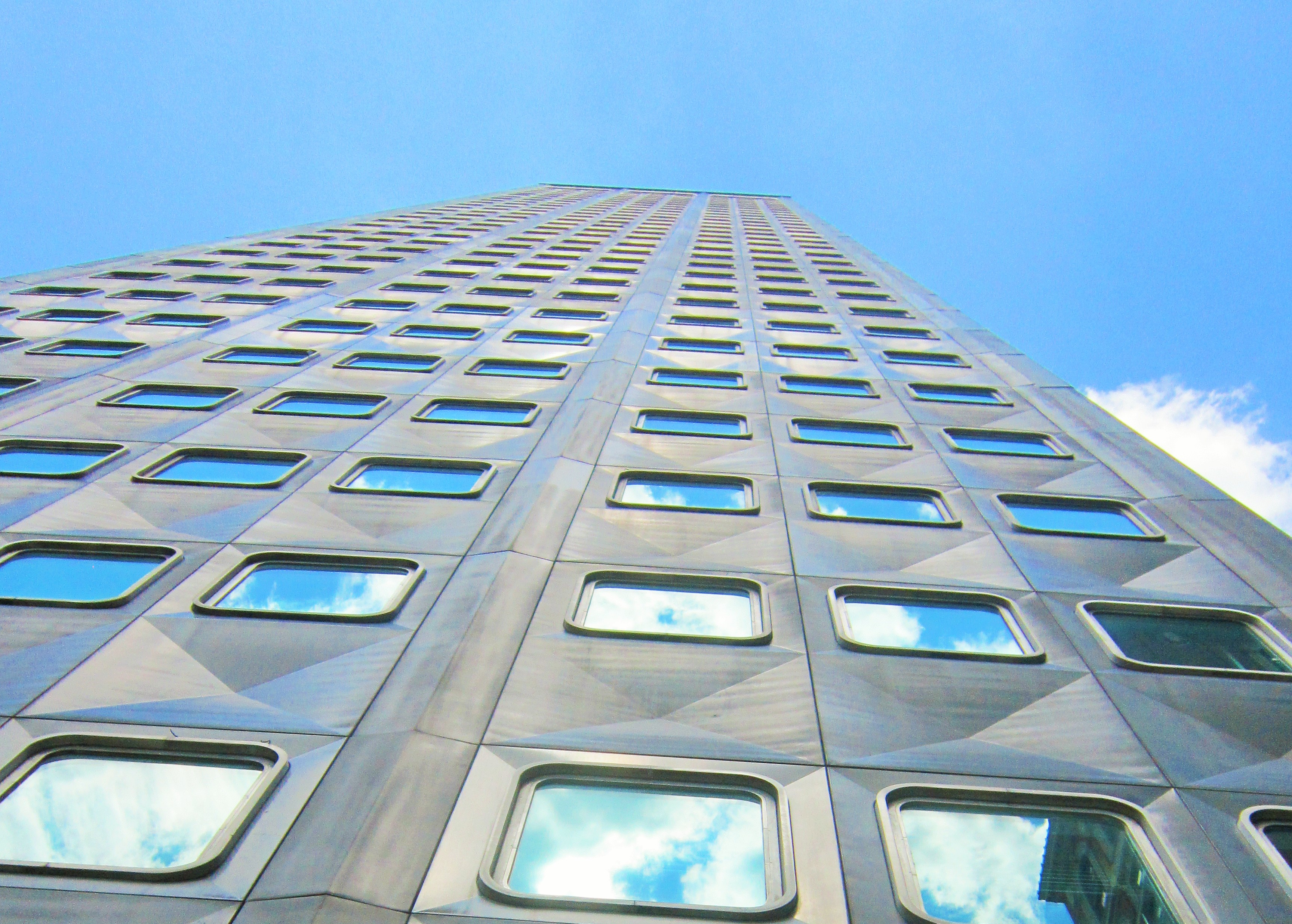 I did have a plane to catch so I hadn’t got very much longer to spend roaming this City. Just enough time to marvel at some more architectural beauties. Like this building which had plane windows. And cloud reflections.