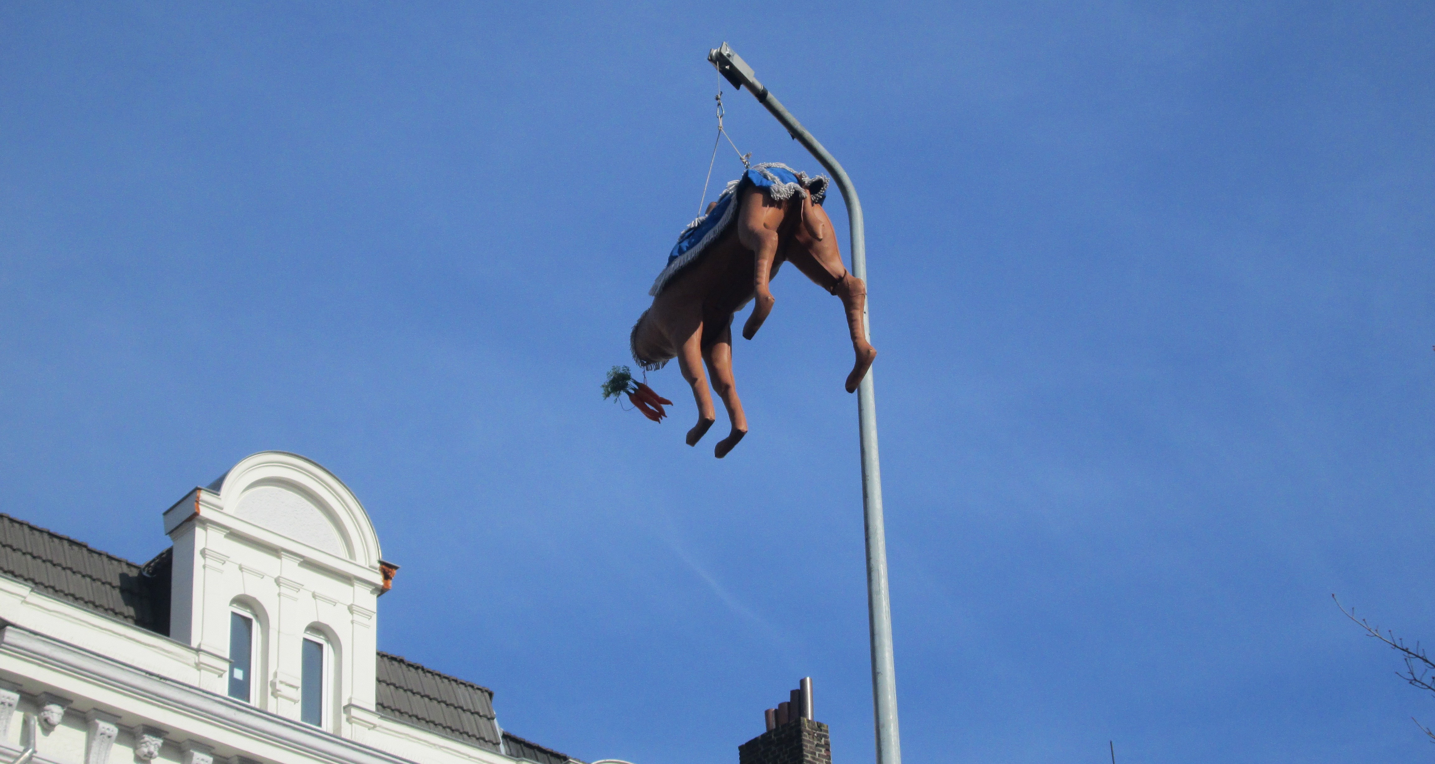 At carnaval you see so many strange things that nothing looks strange any more. Like this giant clog-footed dutch mama swinging by the neck from a scaffold? Normal.