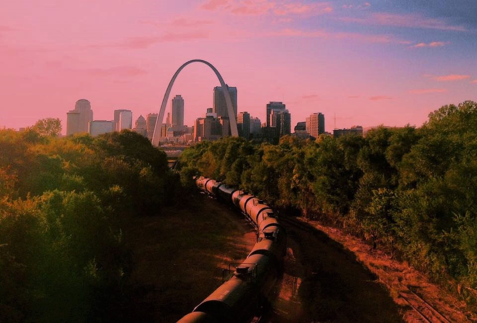 As I was sitting on the train enjoying a much-needed sandwich (I consumed no food during my time in the city), I was greeted with a nice sunset, and stunning view of the Gateway Arch as we crossed over a freight line on our way out of the city. 10/10 for a parting view, St. Louis. 10/10.