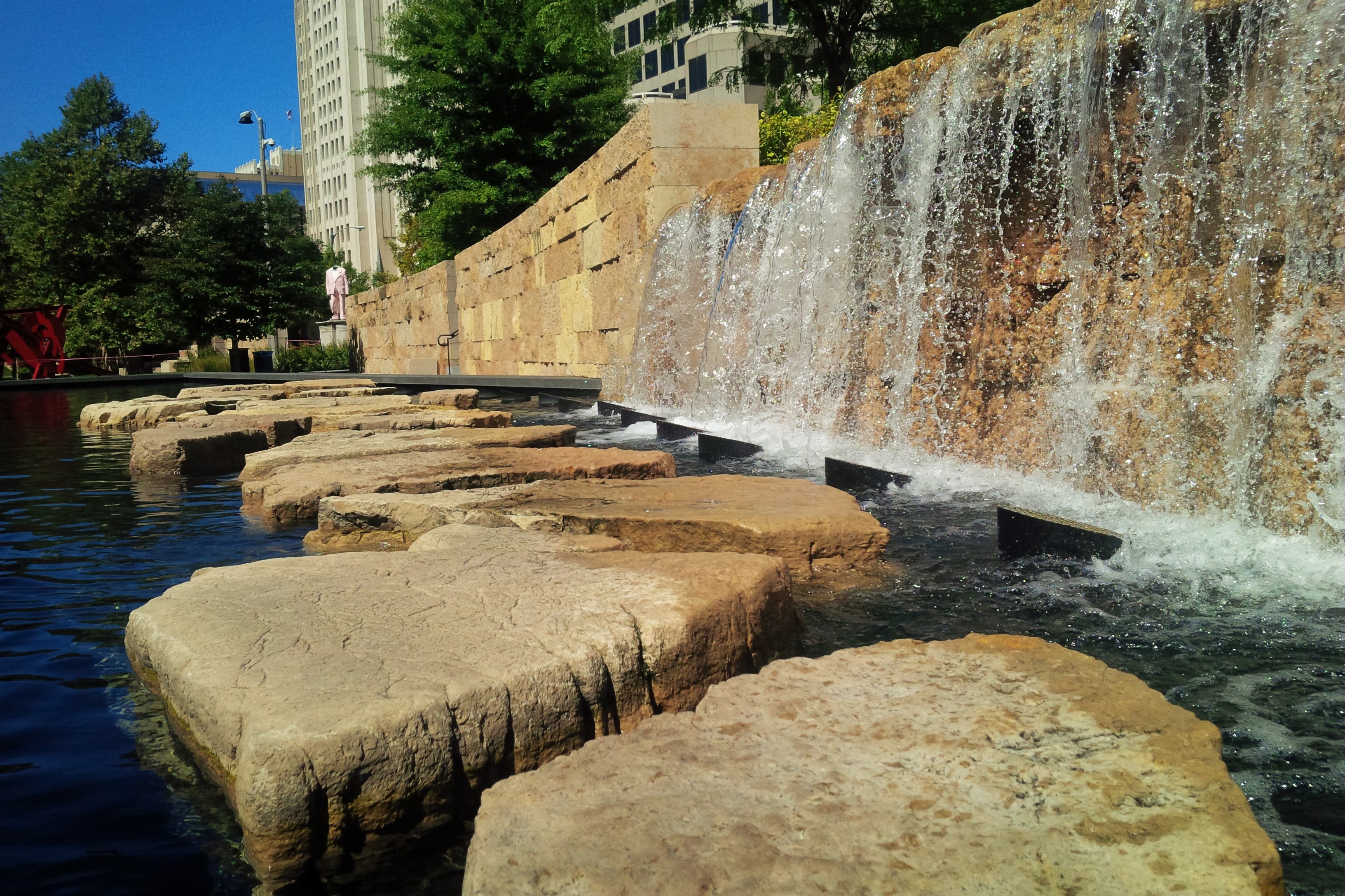 Next, is a sculpture garden with, in addition to the sculptures, a cool waterfall pond thing with stepping stones. I love stepping stones.