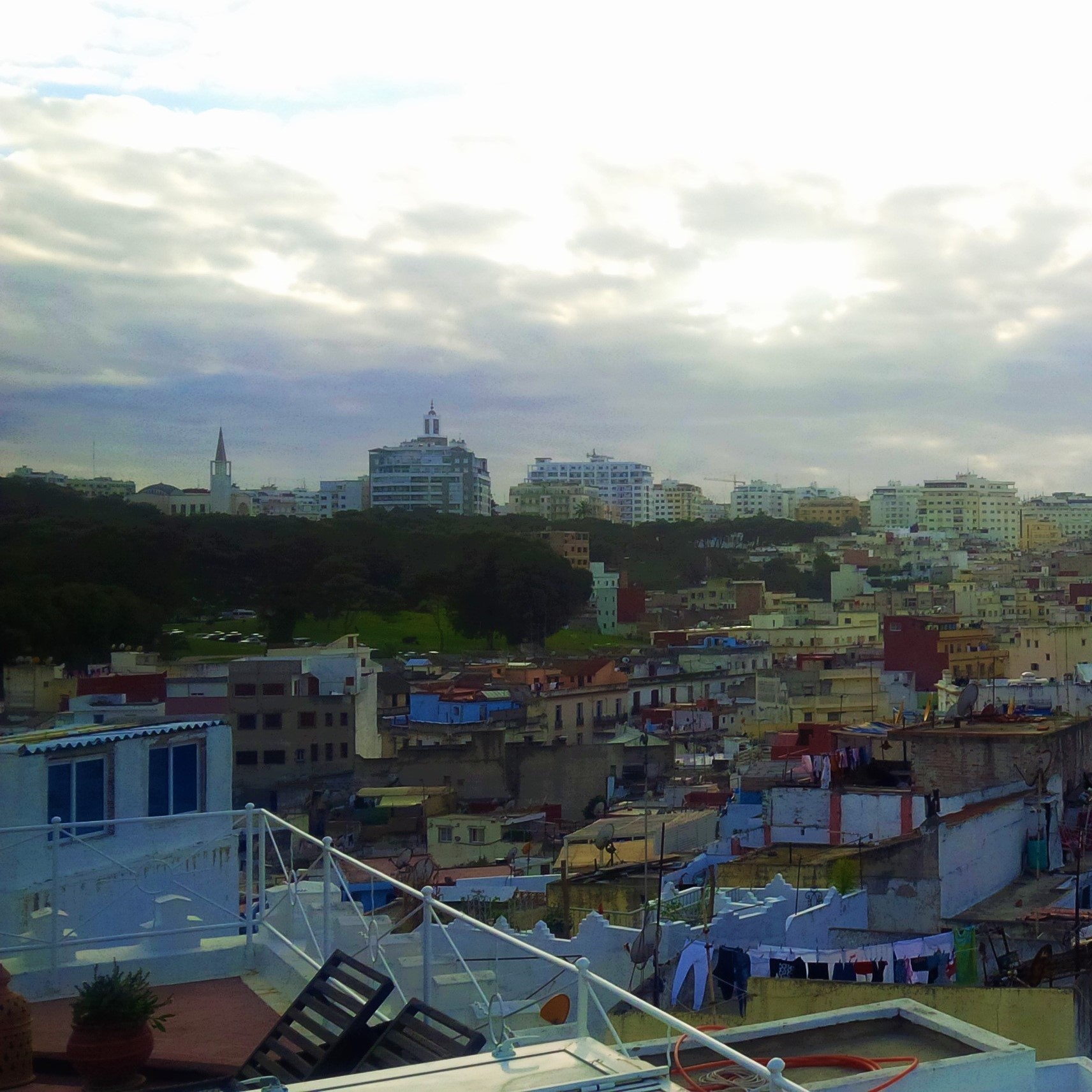 From the terrace, I had seen a spiral staircase going up to what looked like the roof. As we were about to leave, I asked the waiter if I could take a look up there. That was a good call, because the view from here was even better than the view from the balcony – you could see the whole city spread out before you, from the tiny terraces of the medina, all higgledy-piggledy and built almost top of each other, to the bigger buildings of the new town.
