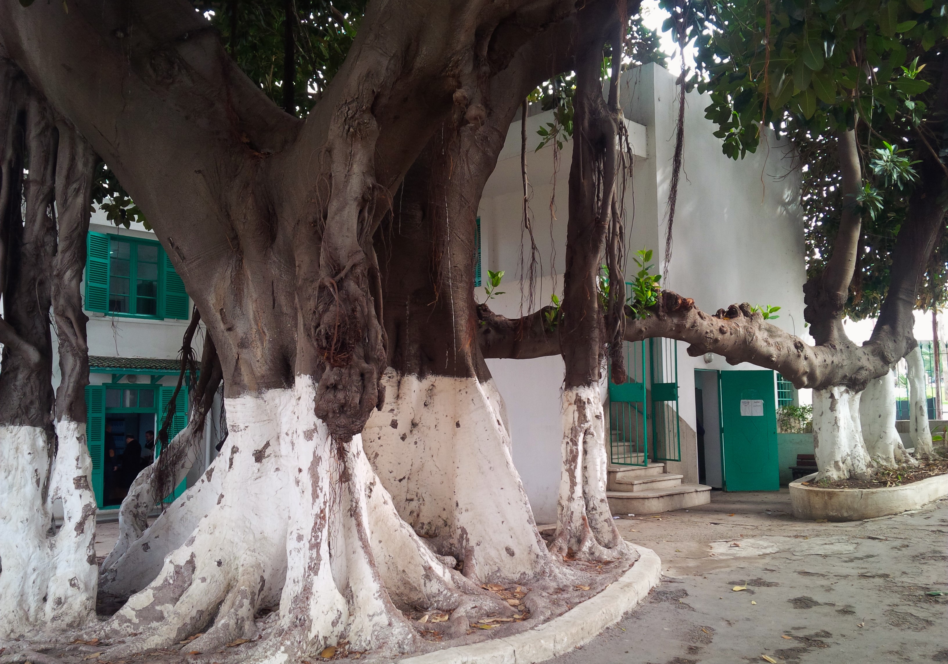 We popped back out in to the open at Place du 9 Avril 1947, the large square (technically it’s an oval) commonly known as Grand Socco. Crossing the square, we take a quick walk through the Jardins de La Mendoubia, a nice grassy area that is home to a giant banyan tree, estimated to be at least 1000 years old. For some reason they have painted the bottom of the trunk white, which kind of ruins the natural beauty of it, but whatever. It’s a big tree.