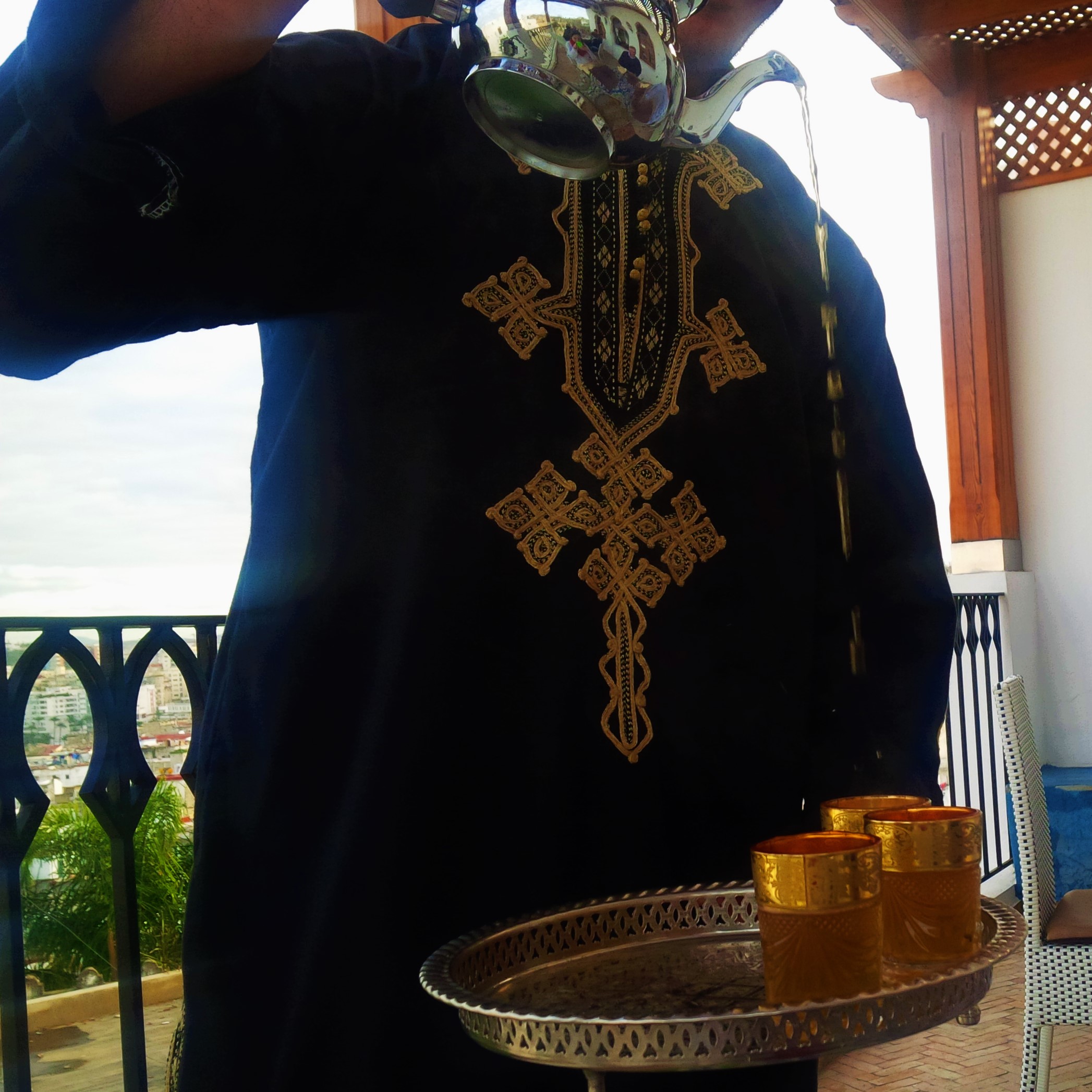 After the food we ordered mint tea, which is a Moroccan speciality. It comes in a big metal tea pot, and the waiter pours it dramatically from a great hight into small glasses. It’s sweet and minty and the perfect way to end a meal. As we were drinking our tea, the people at the table behind us (who were Australian) were greeted by their guide, who took them off to explore the Kasbah. This is obviously an on-the-cards stop for people being guided by locals, but so what? The food was great, the view was amazing. Everybody is happy.