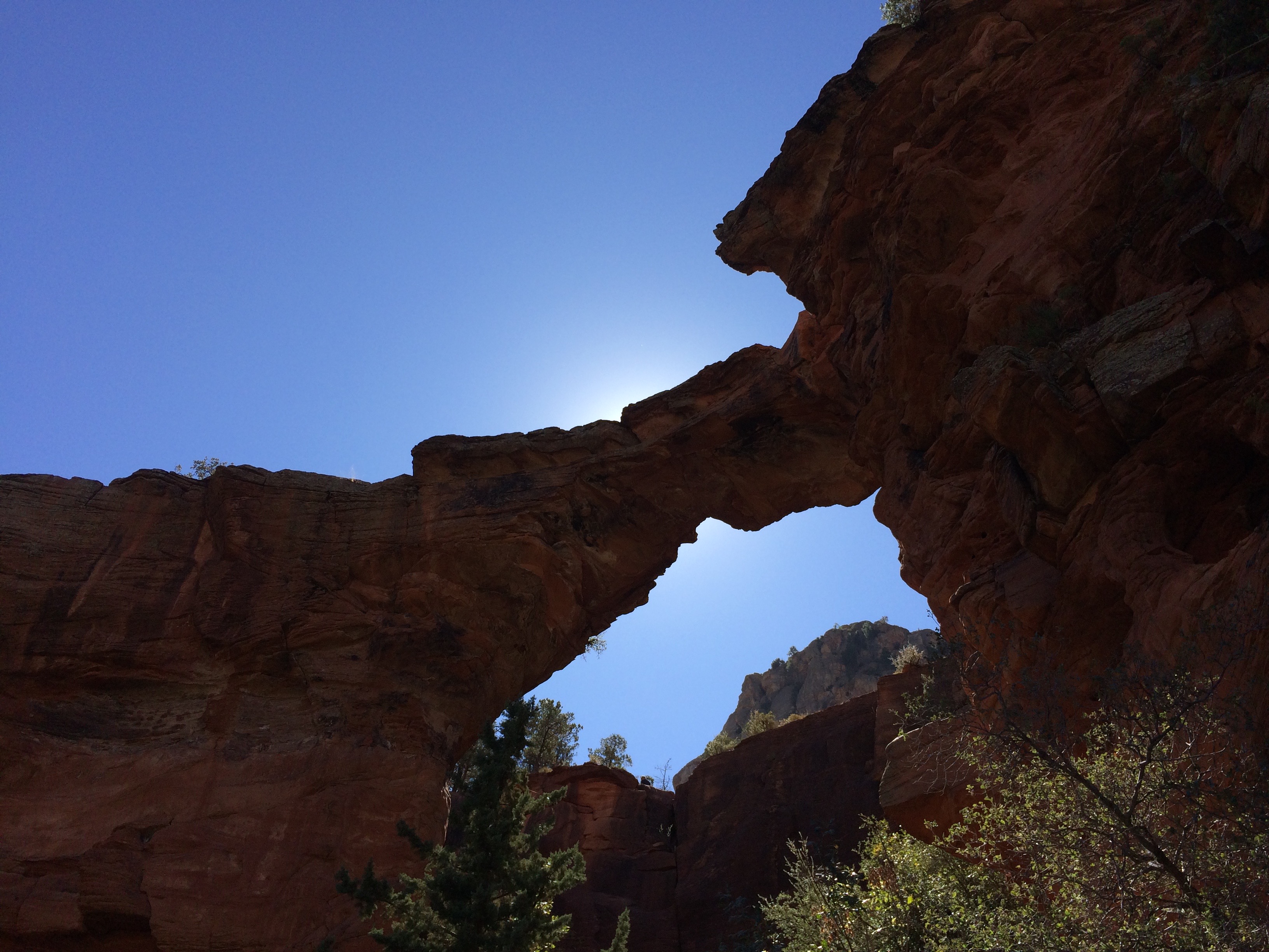 On the way back down, we took a wee detour off the trail to go to under the arch and the sun happened to be just in the right spot that it could be obscured completely by the span of the arch, actually allowing you to take a photo without it being ruined by glare.